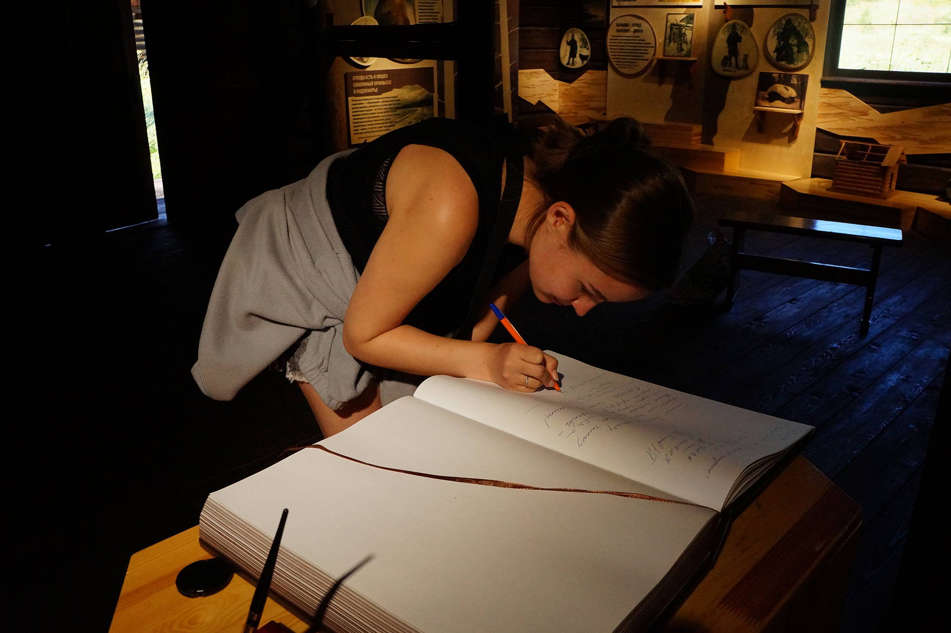 После обеда группа посетила музей природы и визит-центр «Дом Соболя» в поселке Давша. Участники ознакомились с биоразнообразием региона, экологией соболя (Martes zibellina) и проблемами сохранения байкальской фауны. На берегу озера с помощью скребка и сачка были собраны пробы амфипод.