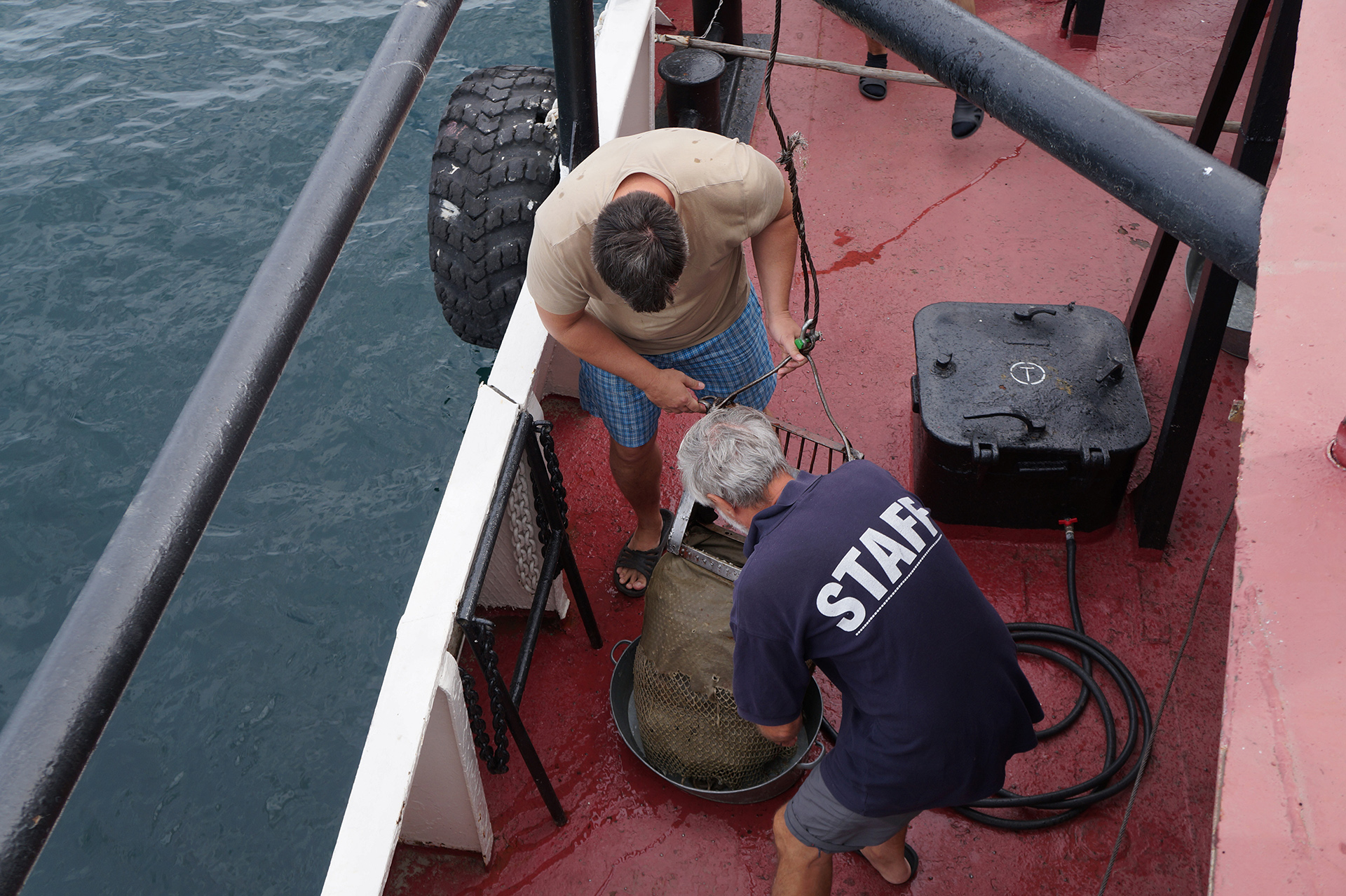 В районе мыса Покойники была проведена траление с использованием драги на глубине 25-30 м (54.008703, 108.225650). Были собраны бычки (Gobiidae) и амфиподы (Amphipoda), которые были зафиксированы для последующего анализа.