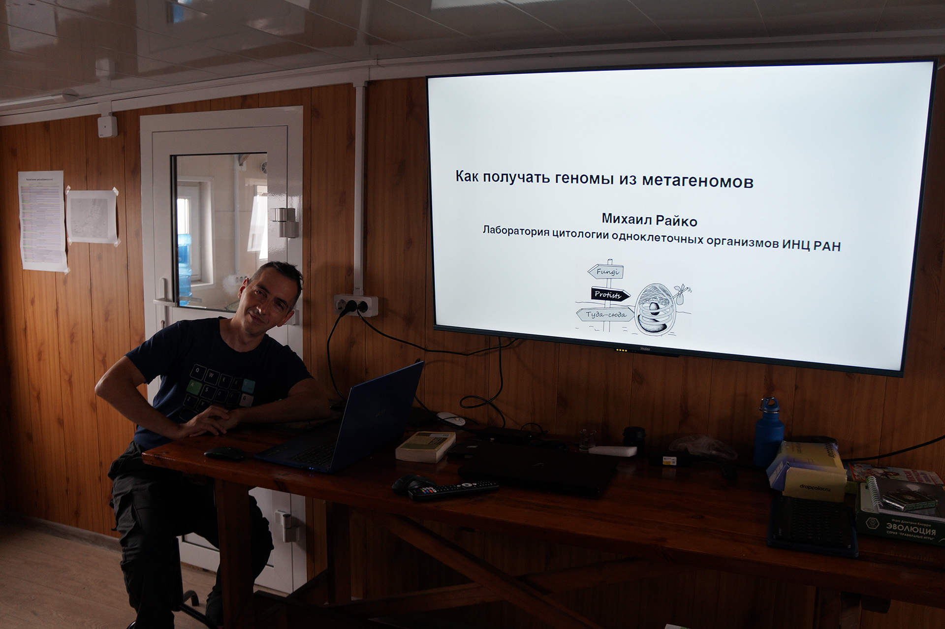 Утром М.П. Райко представил лекцию, в которой рассмотрел методологические аспекты метагеномного анализа, начиная с принципов секвенирования и заканчивая интерпретацией полученных данных. Райко также обсудил современные вызовы и перспективы, связанные с применением метагеномных технологий в различных научных и прикладных направлениях.