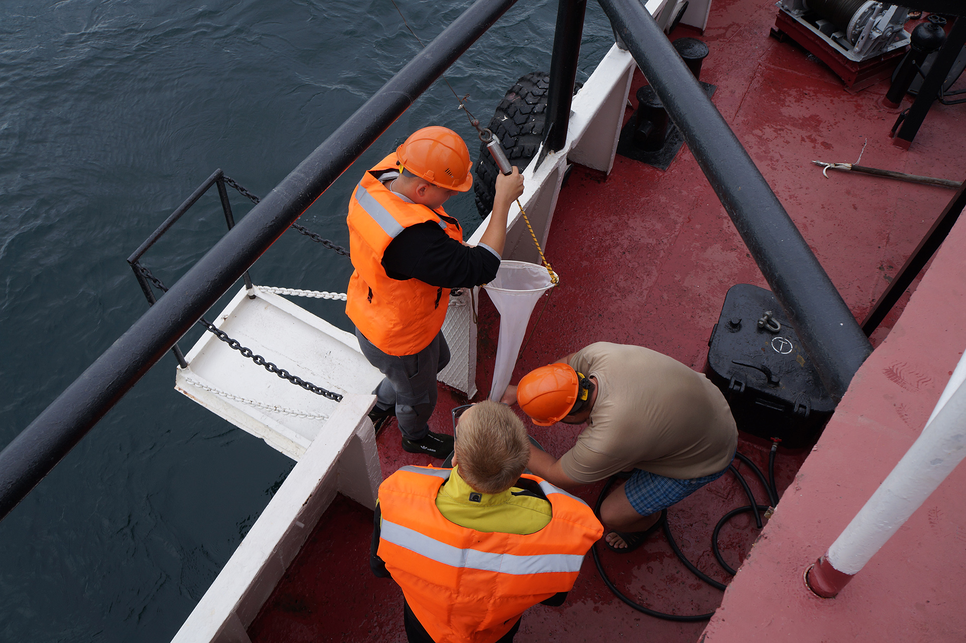 Планктонную сеть бросили на выезде из поселка Турка на глубину 250 м (52.945821, 108.155857). Были пойманы амфиподы (Amphipoda), босмины (Bosmina) и Daphnia galeata.