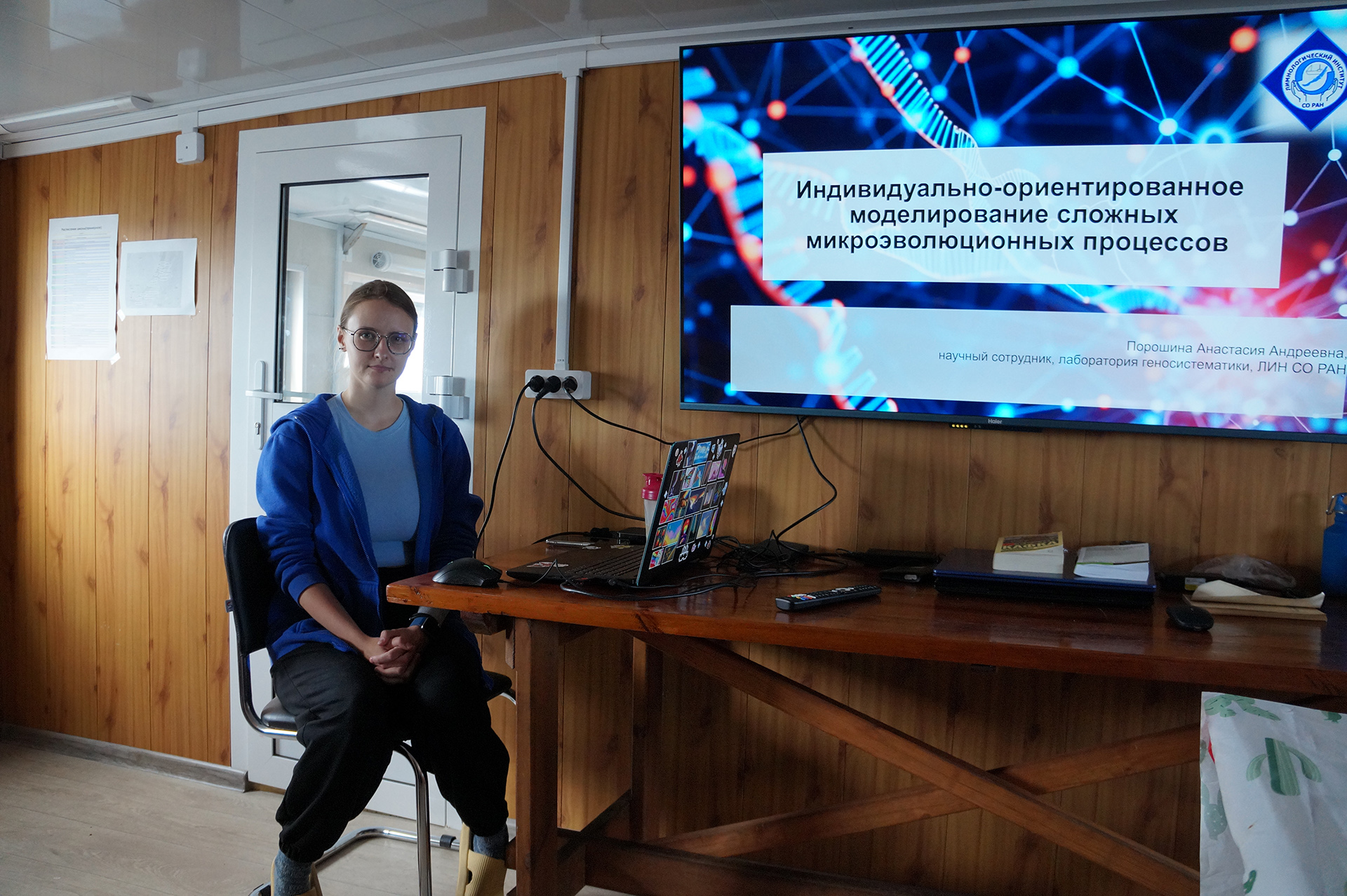 После лекции представила А.А. Порошина:"Моделирование различных стратегий размножения". Лекция охватывала модели микроэволюционных процессов, симуляции полового и бесполого размножения, влияние мутаций, отбора и генетического дрейфа, а также использование программ оригинальной программы Syrin для прогнозирования эволюционных исходов.